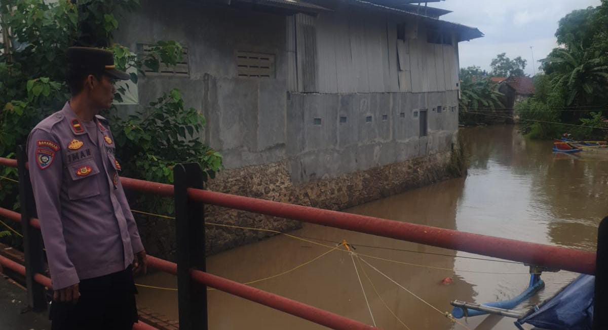 Dalam Siaga Bencana Polsek Anyar Patroli Debit Air Sungai