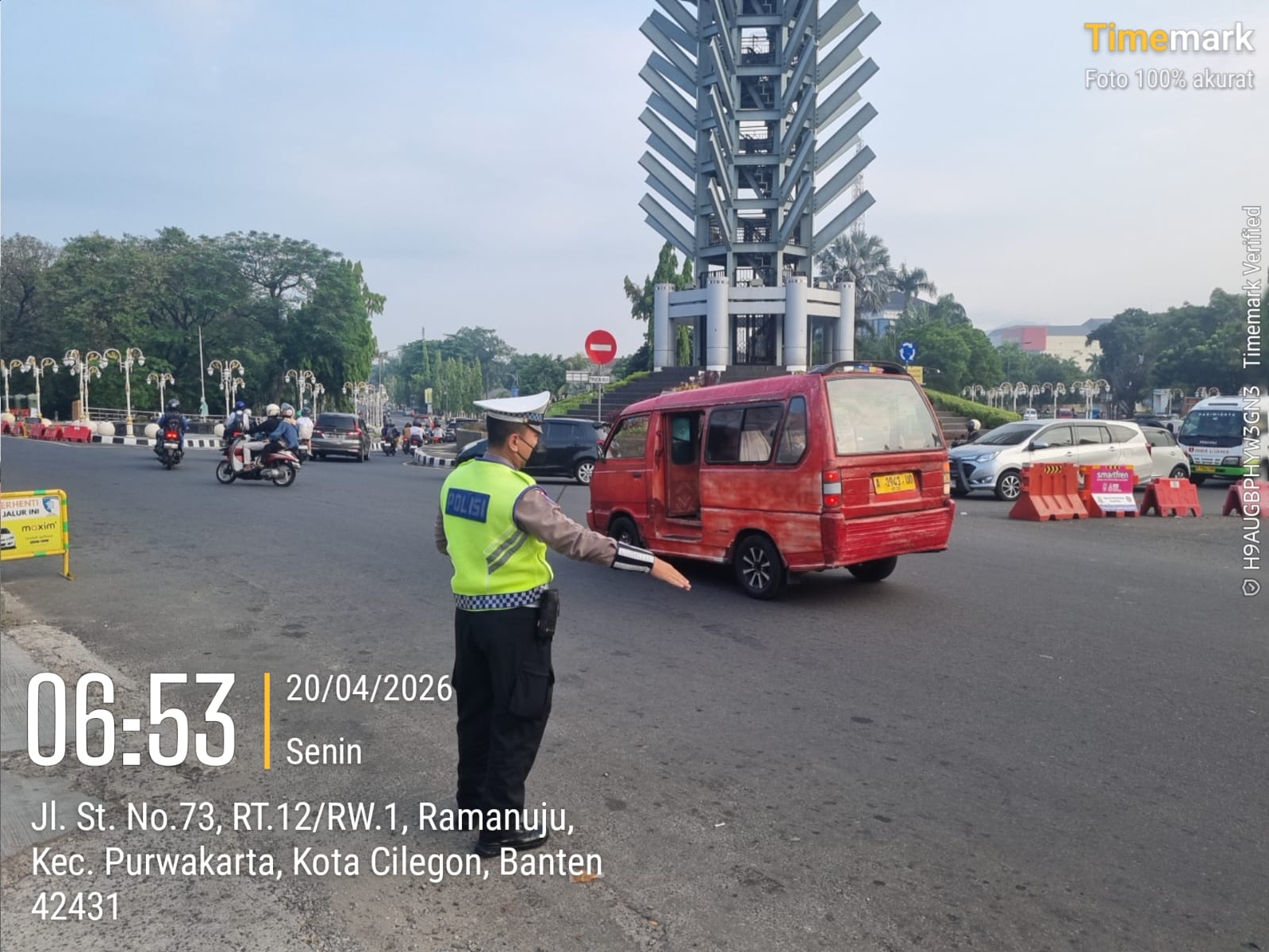 Cilegon, Satlantas Polres Cilegon Polda Banten – Berikan pelayanan kepada masyarakat Kasat lantas Polres Cilegon AKP Ridwan memerintahkan jajaran lalulintas untuk melaksanakan pengaturan lalu lintas di penggal – penggal jalan yang rawan kemacetan di Kota Cilegon, (Senin,20/4/2026)Dalam giat Pengaturan Lalu lintas di Sore hari ini bertujuan agar terciptanya Kamseltibcar Lantas dan mengantisipasi terjadinya Laka...