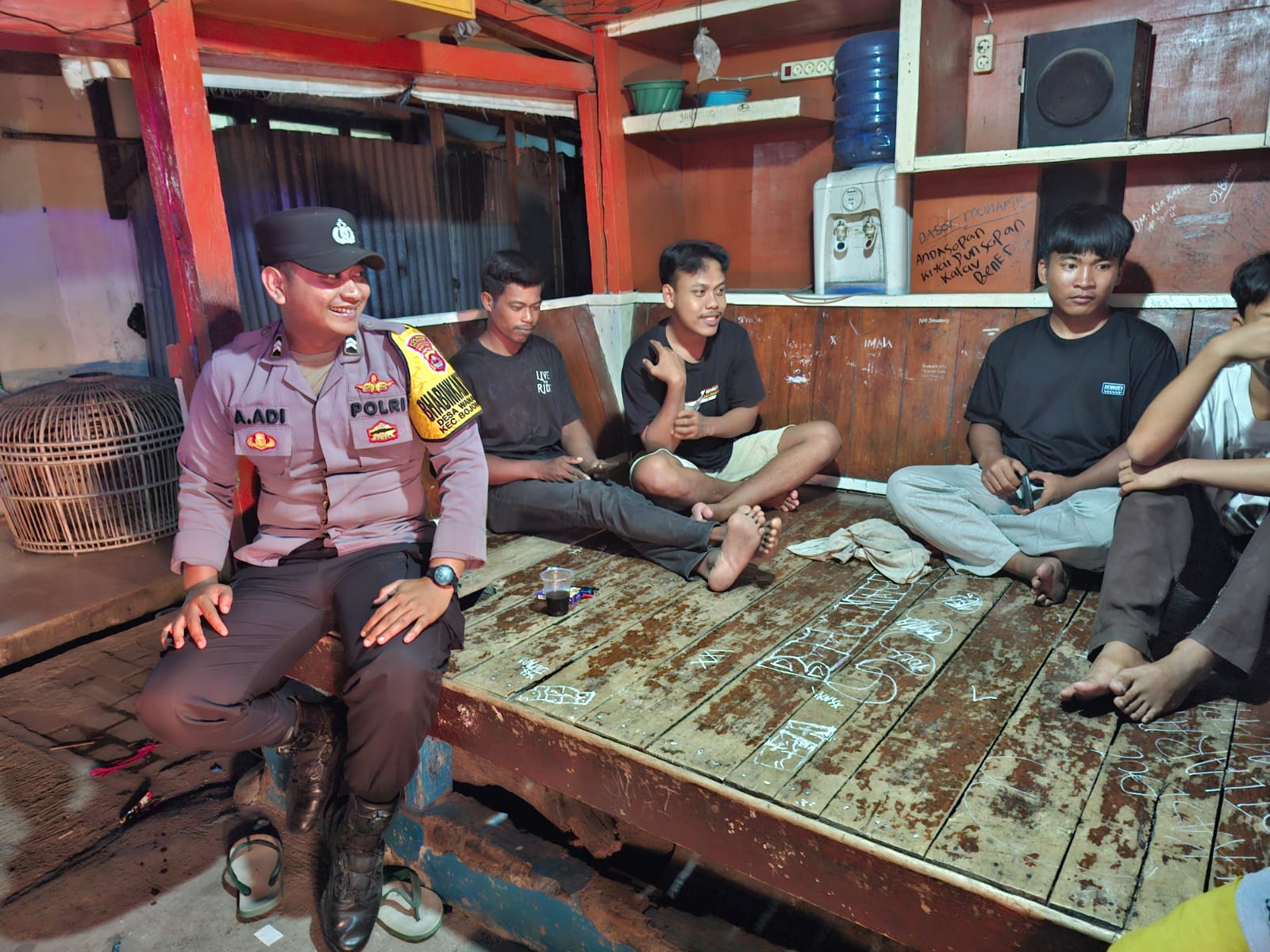 Briptu Alang Bhabinkamtibmas Polsek Bojonegara Patroli Sambang Pos Kamling Dorong Warga Aktif Jaga Kamtibmas