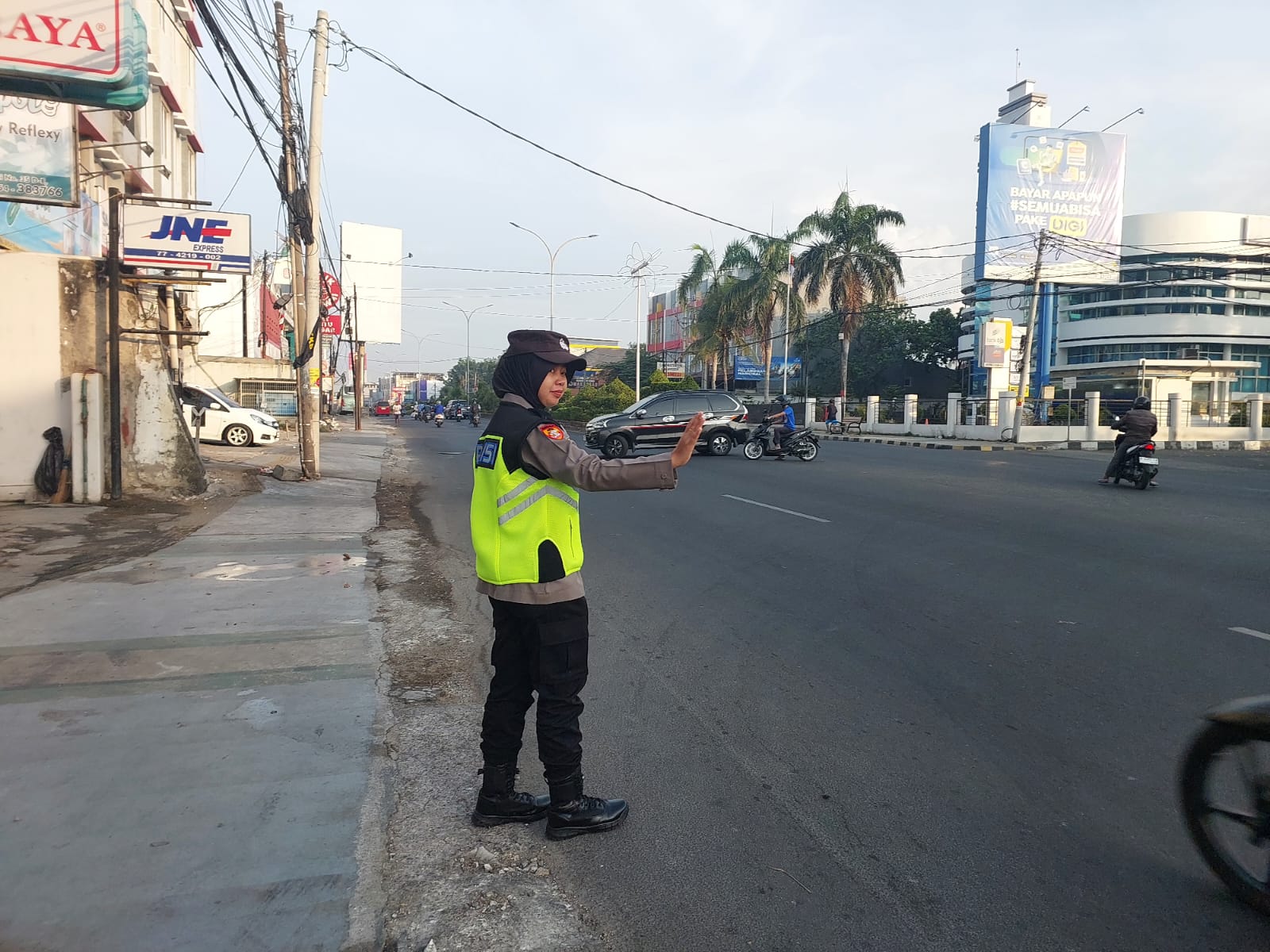 Ciptakan Kamseltibcarlantas, Sium Polres Cilegon Atur Lalu Lintas Pagi Hari