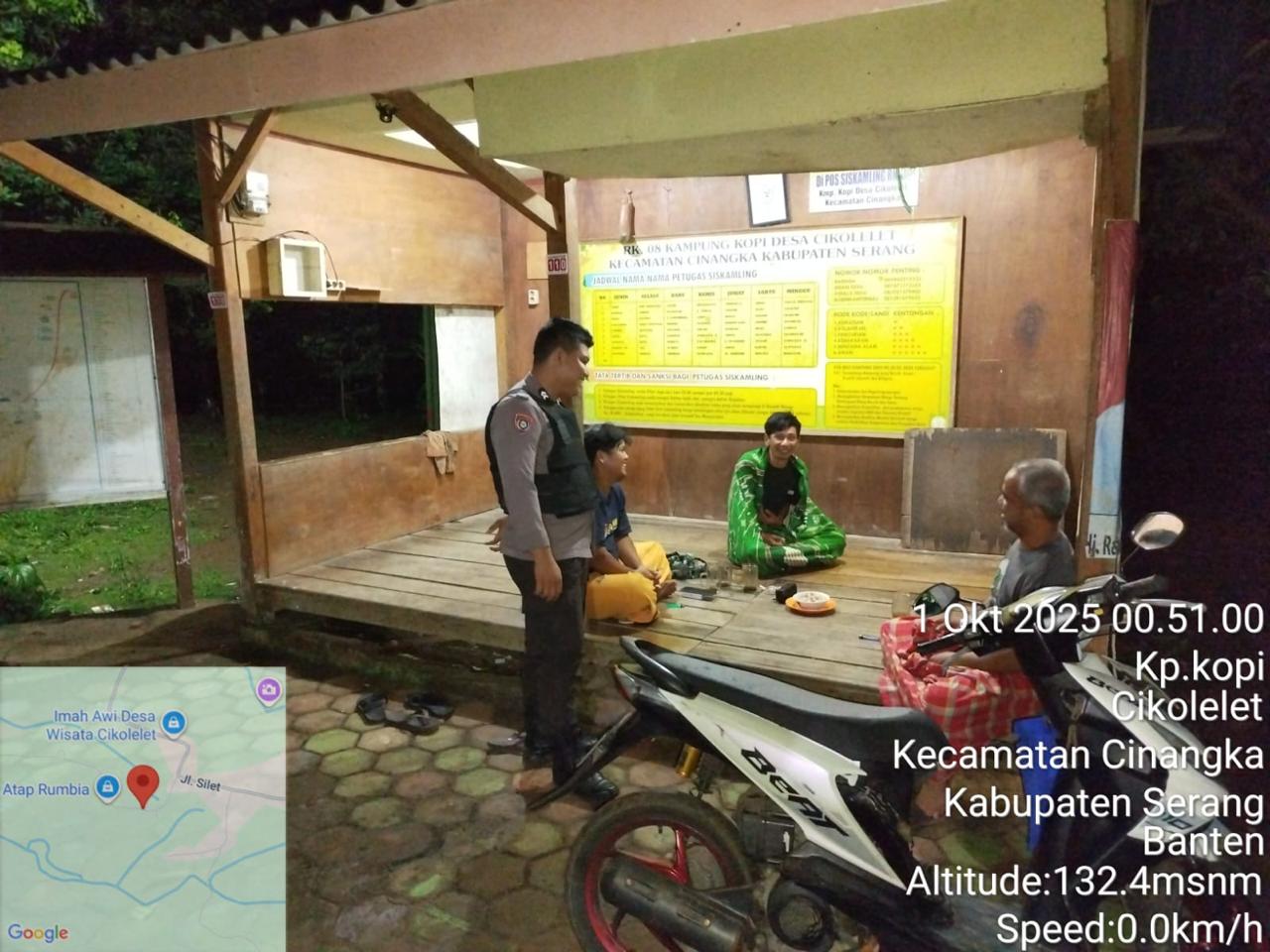 *Polres Cilegon* || Personil Bhabinkamtibmas Polsek Cinangka melaksanakan Program Komandan Wish Kapolda Banten RONDA SATKAMLING menyampaikan komunikasi dengan Petugas Siskamling agar berperan aktif dalam menciptakan Harkamtibmas yang aman dan Kondusif, Rabu (01/10/2025).