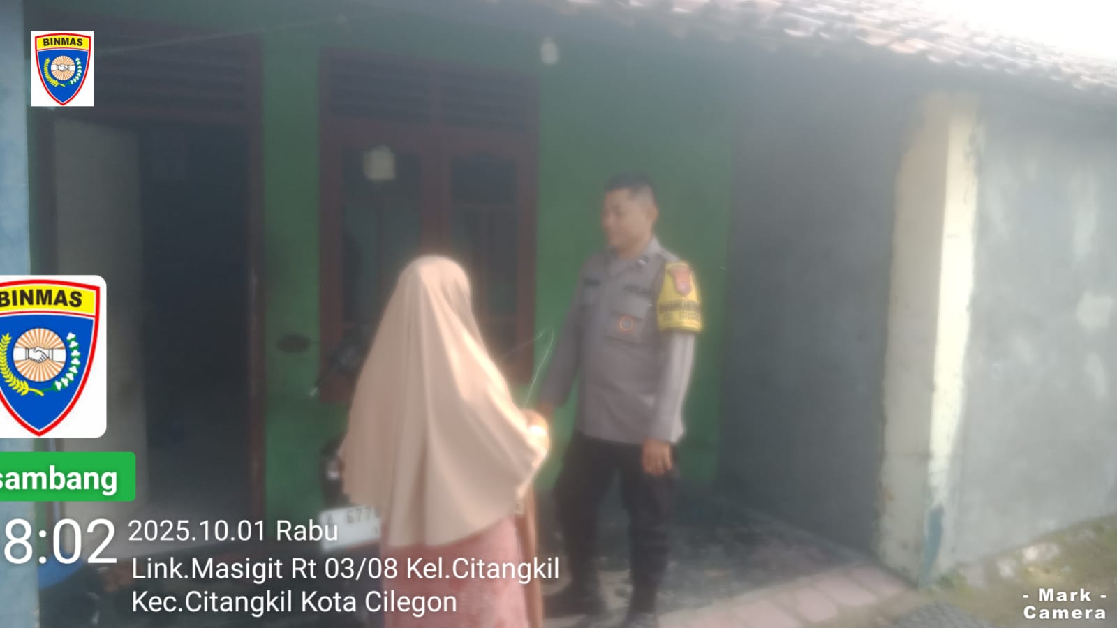 Cilegon - Bhabinkamtibmas Polsek Ciwandan Polres Cilegon Polda Banten Melaksanakan kegiatan Dialogis/Sambang Door to Door Sistem (DDS) Di daerah binaannya serta memberikan Pesan-pesan Kamtibmas Guna Menciptakan situasi Harkamtibmas yang Aman dan nyaman, Rabu (01/10/2025).