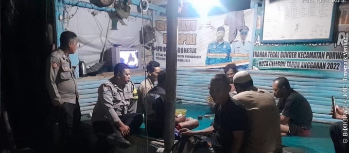 Kunjungi Pos Ronda Warga Personil Bhabinkamtibmas Berbincang bersama Warga dan Pastikan Kamtibmas kondusif