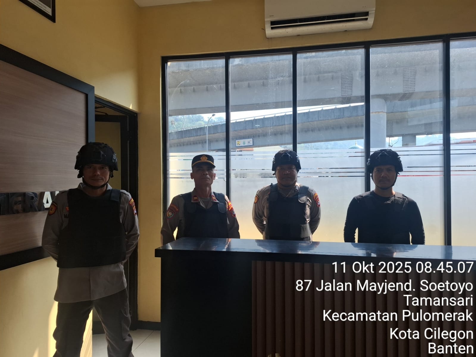 Cilegon - Personel piket jaga Polsek Kskp Merak Polres Cilgon Polda Banten melaksanakan siaga 1 Polsek pelaksanaan Sispam Mako oleh piket siaga dipimpin oleh Kspk Polsek Kskp Merak Polres Cilegon Polda Banten, Sabtu (11/10/2025).