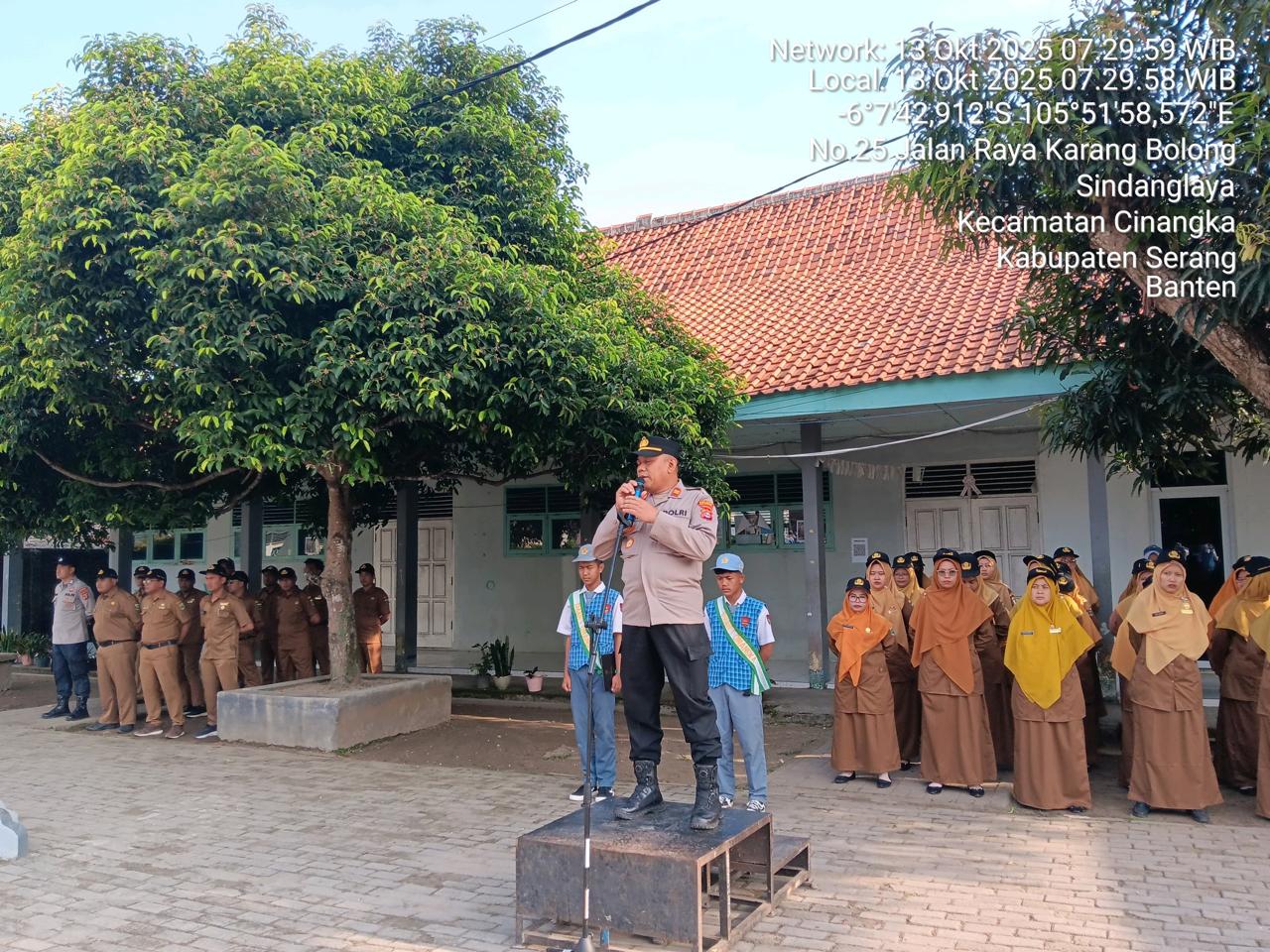 -*POLRES CILEGON*- Polda Banten.dalam Rangka Menjaga dan menjunjung Rasa kebangsaan Sejak dini Maka Kapolsek Cinangka Polres Cilegon IPTU Rusnata Membawakan Upacara Bendera Merah Putih di Sekolah SMA Negeri 1 Cinangka yang beralamat Kp. Ciparay Desa Sindanglaya Kecamatan Cinangka Kabupaten Serang Senin (13/10/2025)