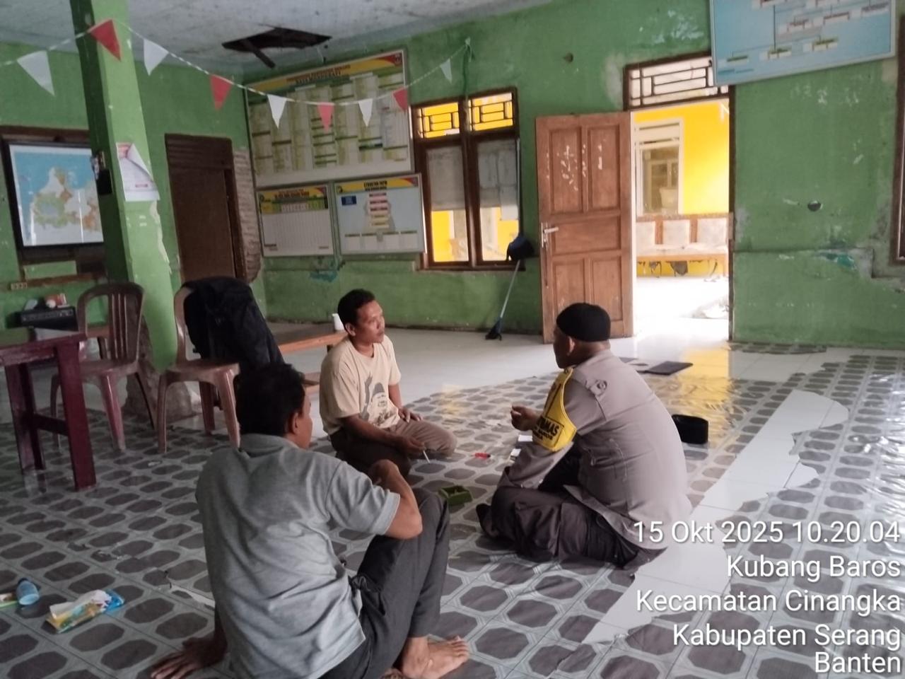 *CILEGON* dalam Rangka Mengantisipasi Gktm di wilayah Personil Bhabinkamtibmas Cinangka melakukan patroli Dialogis dengan Kepala Desa dan warga dan Menanyakan situasi Kamtibmas di wilayah dalam Rangka Menjaga Harkamtibmas di Desa Binaannya Kecamatan Cinangka Kab. Serang. Rabu (15/10/2025).