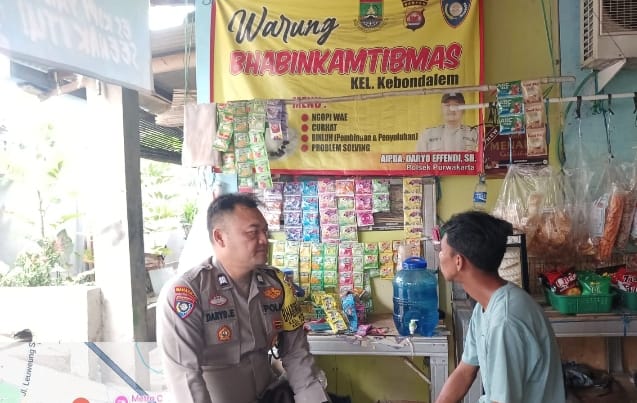 Babinkamtibmas Kelurahan Kebon Dalem, Kecamatan Purwakarta, Kota Cilegon, aktif melaksanakan kegiatan sambang dan berdialog dengan warga di warung-warung kopi Bhabinkamtibmas
