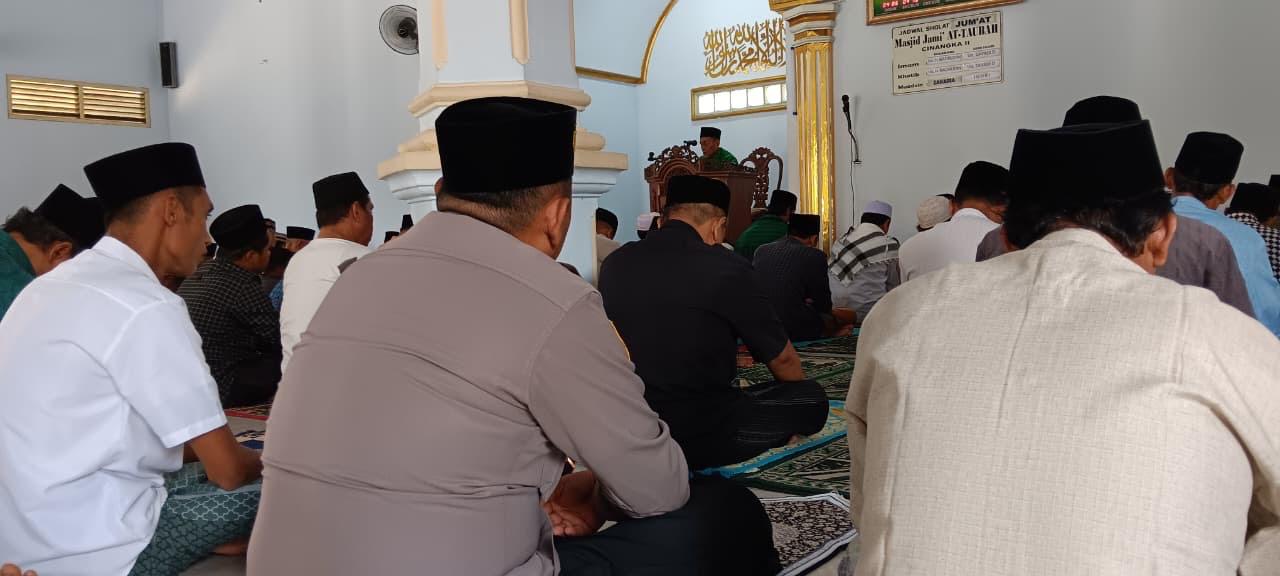 *POLRES CILEGON* - Kapolsek Cinangka Polres Cilegon Polda Banten dan Jajaran melaksanakan giat Juma't keliling dalam rangka silaturahmi menjalin kemitaraan dan menjaga Harkamtibmas di Desa Binaannya sebagai bentuk mendukung Program Quick Wins Presisi Polri, Jumat (17/10/2025).