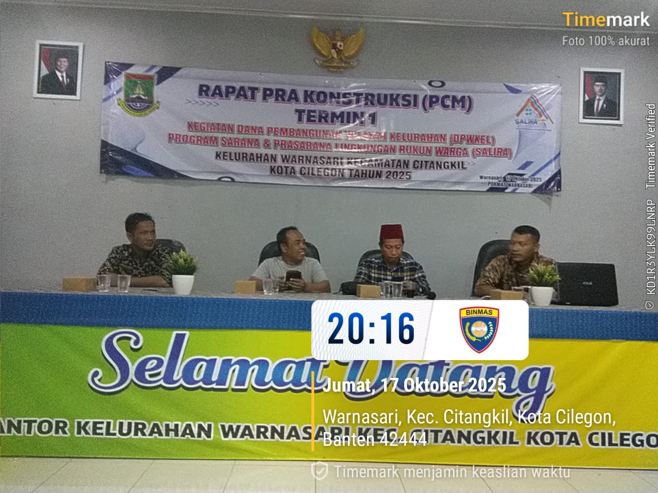 Cilegon - Bhabinkamtibmas Kelurahan Kebonsari Polsek Ciwandan Polres Cilegon Polda Banten AIPDA M. Enday Melaksanakan kegiatan Rapat Pra Kontruksi Pelaksanaan pembangunan Desa Kelurahan Kebonsari Kecamatan Citangkil kota Cilegon, Sabtu (18/10/2025).