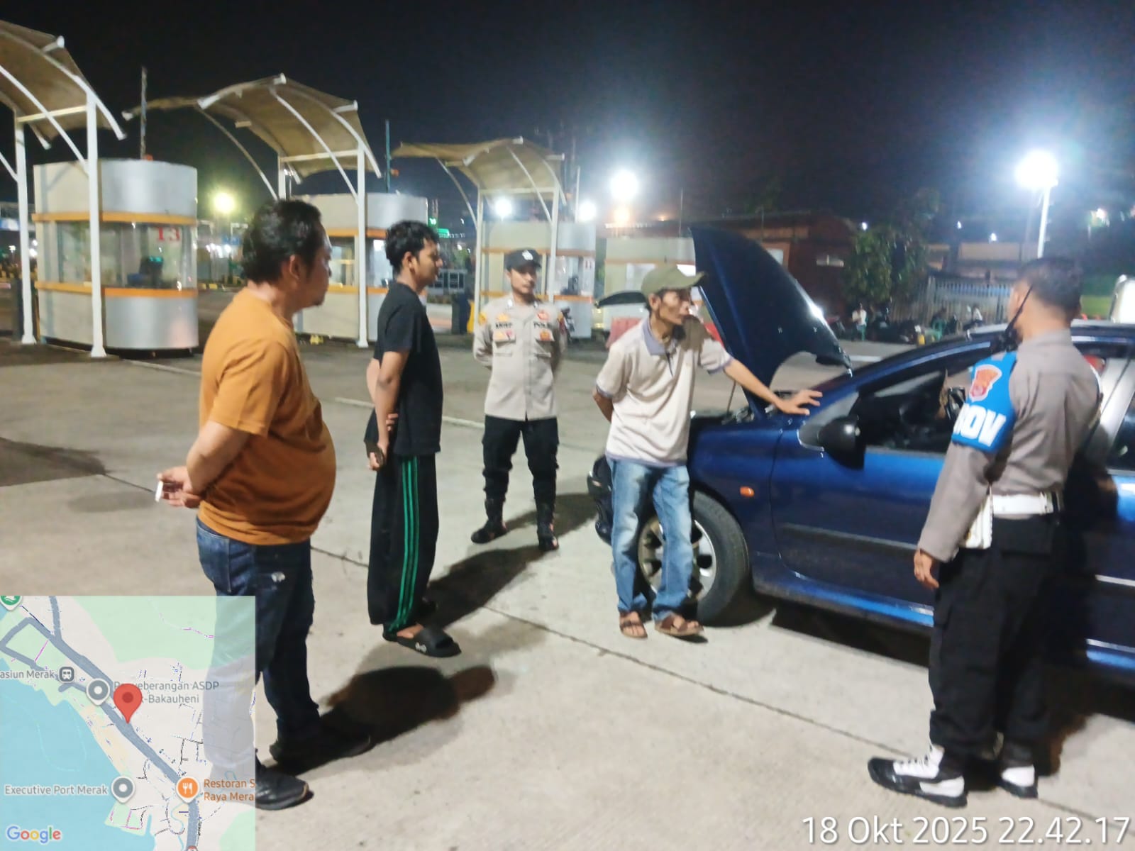 Cilegon - Personil Polsek Kskp Merak Polres Cilegon melaksanakan patroli di kawasan pelabuhan merak memberikan rasa aman dan damai, Minggu (19/10/2025)