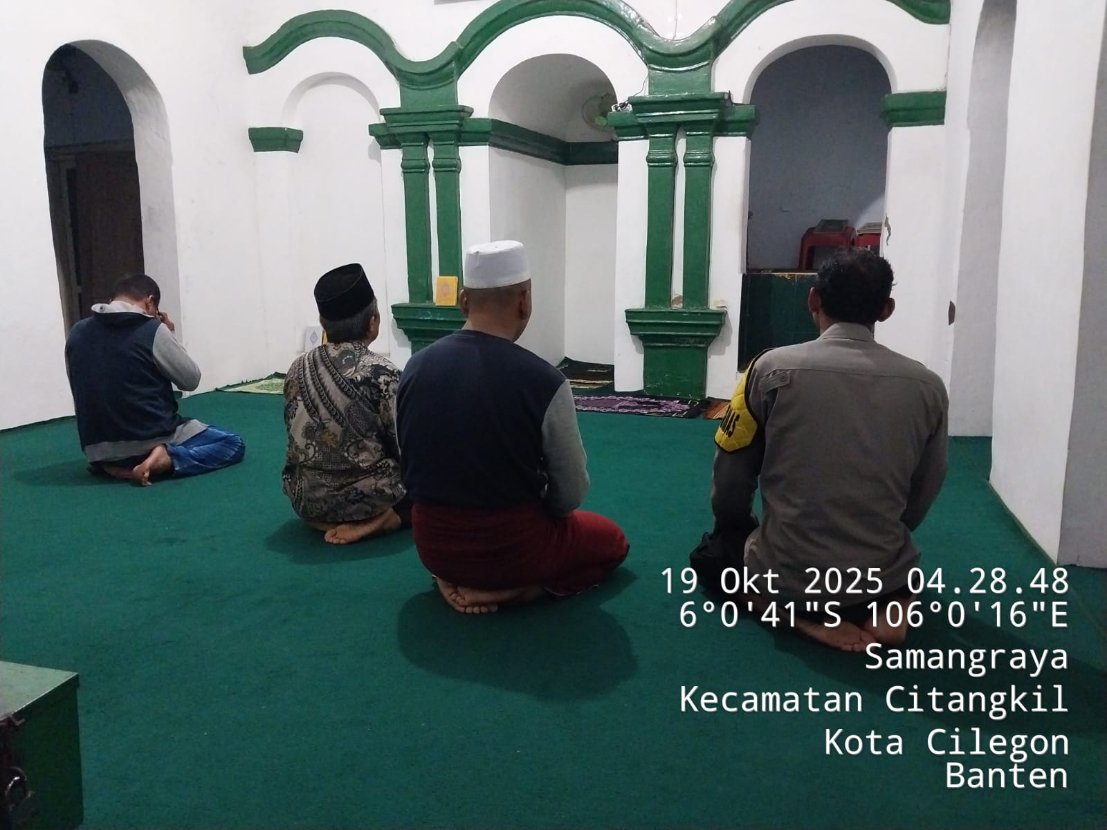 *Cilegon* – Bhabinkamtibmas Polsek Ciwandan Polres Cilegon Polda Banten menggelar kegiatan Pembinaan Rohani dengan Sholat subuh keliling di Masjid Yang ada Di Daerah hukum Polsek Ciwandan Polres Cilegon Polda Banten, Minggu (19/10/2025).