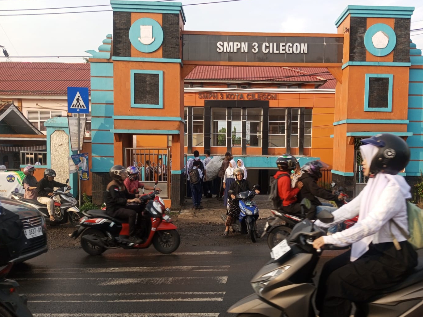 Kanit Lantas Polsek Pulomerak Bantu atur lalin di depan SMP 3 Cilegon