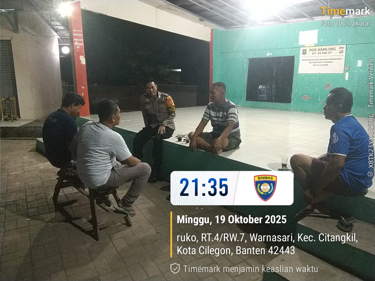 Cilegon - Bhabinkamtibmas Polsek Ciwandan Polres Cilegon Polda Banten kontrol Pos Ronda dan Berikan himbauan kepada pihak terkait dan warga, agar kegiatan Siskamling ditingkatkan lagi, Senin (20/10/2025).