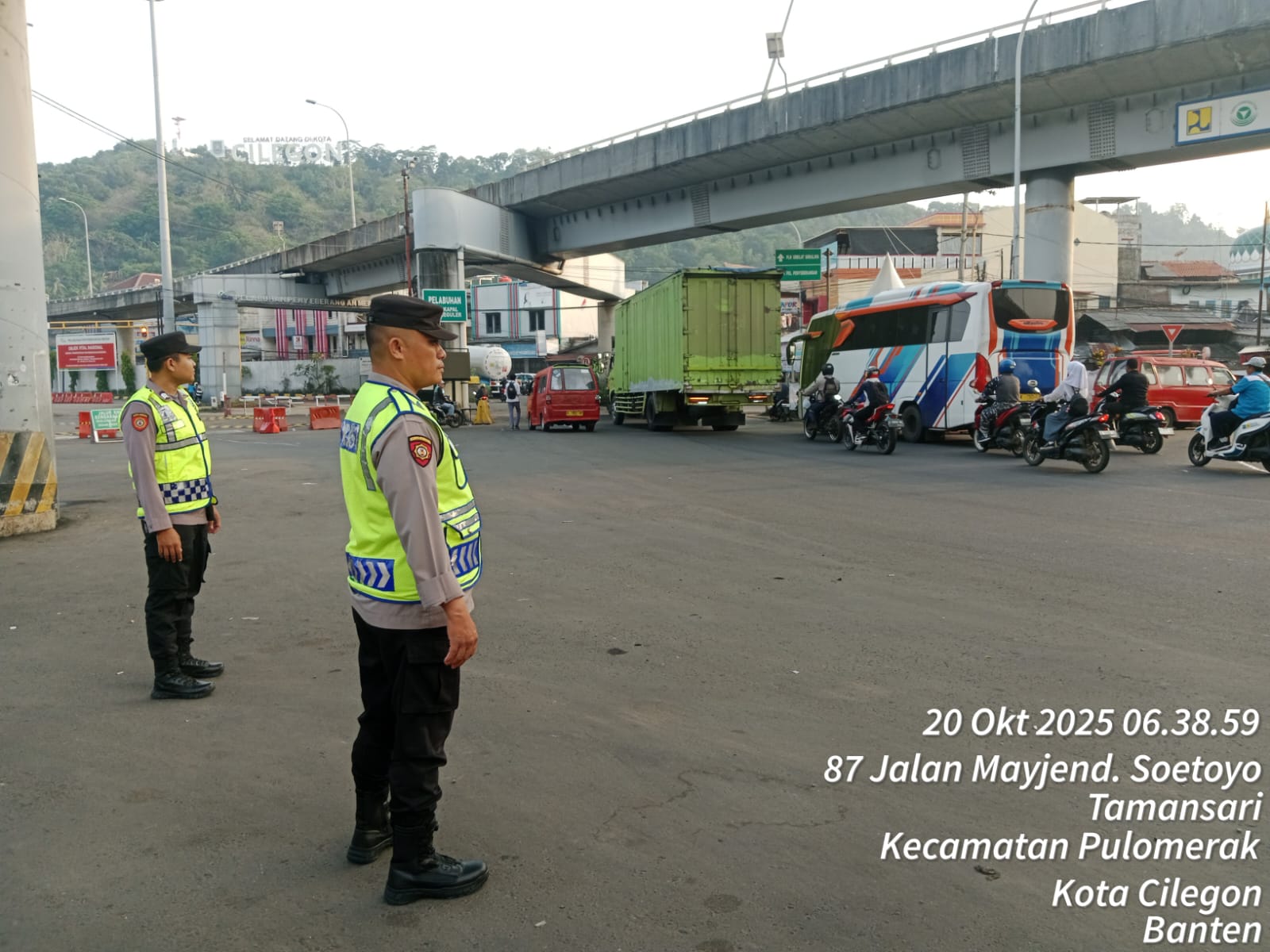 Cilegon - Dalam rangka peningkatan pelayanan prima kepada masyarakat, Kskp Merak Polres Cilegon Polda Banten melaksanakan pengaturan antrian R4 yang akan masuk ke Kapal Ferry di Pelabuhan Merak, Senin (20/10/2025).