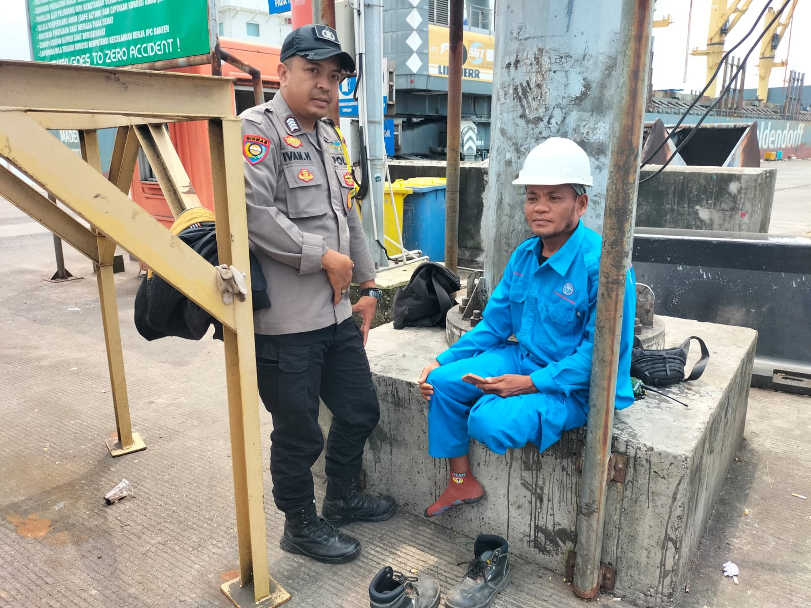 Jalin Silaturahmi, Bhabinkamtibmas Pelabuhan Polsek KSKP Banten berbincang ke Buruh Pelabuhan