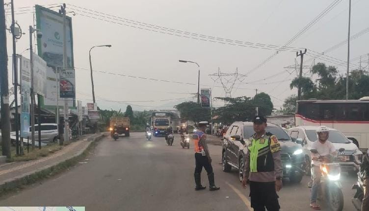 Cilegon - Pelayanan Kepada Warga Masyarakat dan Guna menciptakan situasi lalu lintas yang aman, tertib dan lancar, Personel Polsek Cibeber Polres Cilegon Polda Banten secara rutin melaksanakan pengaturan lalu lintas di sekitar Traffic Light PCI kota Cilegon.