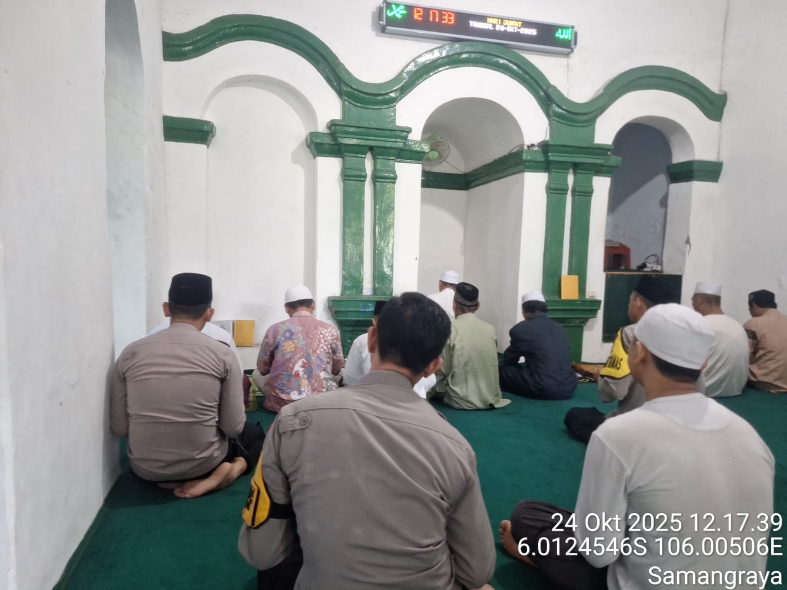 Cilegon - Dalam Rangka Implementasi Program Kapolda Banten Yaitu Sholat Jum’at Keliling Dan Berjama’ah Serta Memakmurkan Masjid, Wakapolsek Ciwandan AKP Uup M. Ma'ruf Dan Bhabinkamtibmas Polsek Ciwandan Polres Cilegon Polda Banten Sholat Berjama’ah dan Bersilaturahmi Bersama masyarakat sebagai upaya meningkatkan Ukhuwah Islamiyah dalam menjalin silaturahmi dan membangun komunikasi yang baik,Jum’at (24/10/2025).