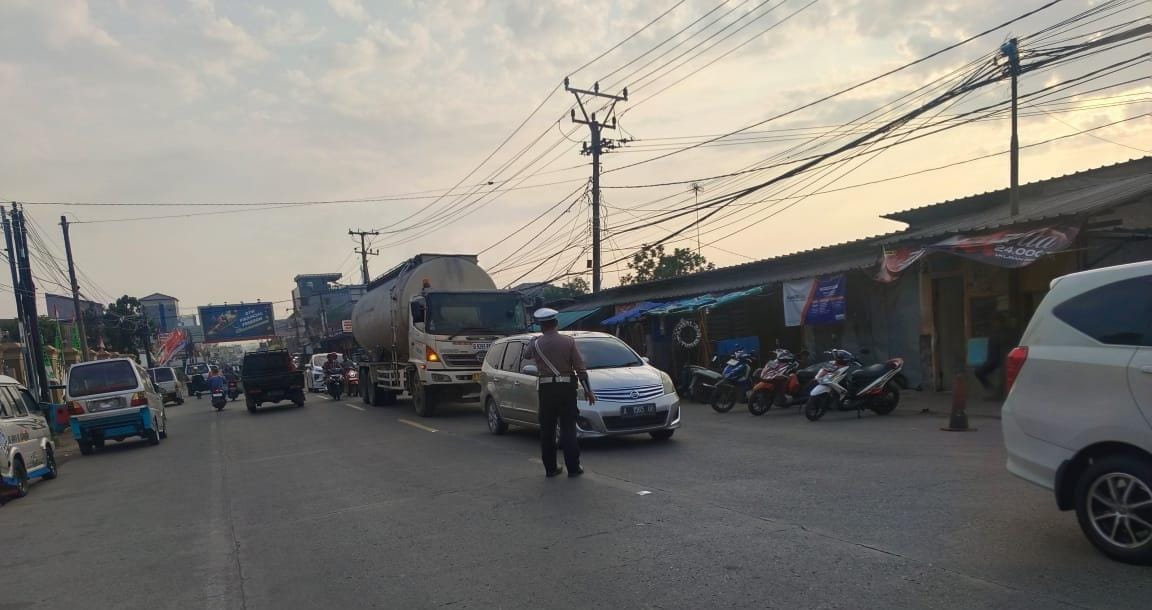 Polsek Anyar Laksanakan Pengaturan Arus Lalu Lintas Jalur Anyar - Cinangka