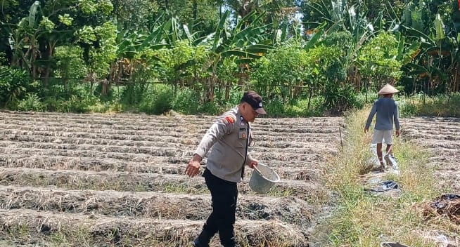 Aiptu Daryo.E terjun langsung ke lahan pertanian, bahu-membahu bersama para petani menanam bibit jagung. Kehadirannya tidak hanya .