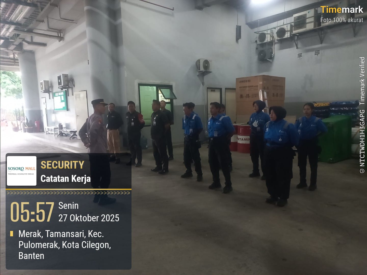Cilegon - Personil Polsek Kskp Merak Polres Cilegon Polda Banten Laksanakan Pembinaan Scurity Guna Memelihara Harkamtibmas, Sebagai Petugas satuan pengamanan atau security merupakan bagian dari mitra dan kepanjang tanganan tugas Polri yang membantu melaksanakan pengamanan di daerah binaannya, Senin (27/10/2025).