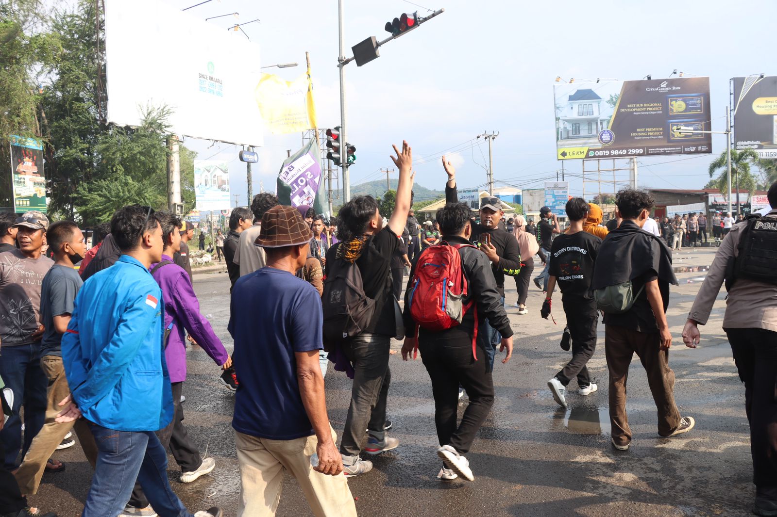 Sekitar pukul 15.45 WIB, kegiatan orasi di simpang Lampu Merah PCI dinyatakan selesai dan massa mulai bergerak kembali menuju titik kumpul dengan situasi yang tetap terkendali.