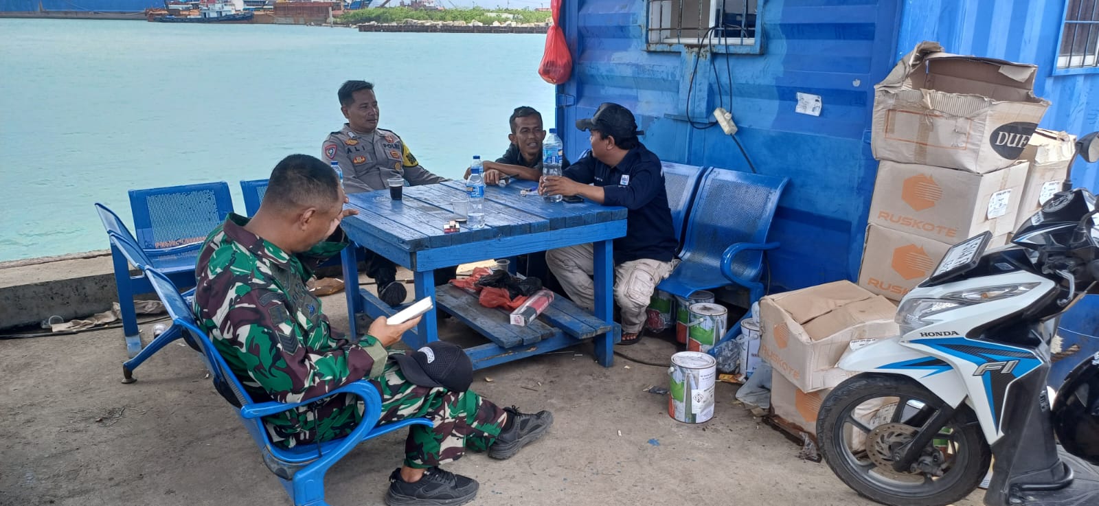 Jalin Silaturahmi, Bhabinkamtibmas Pelabuhan Polsek Kawasan Pelabuhan Banten berbincang dengan Buruh Pelabuhan