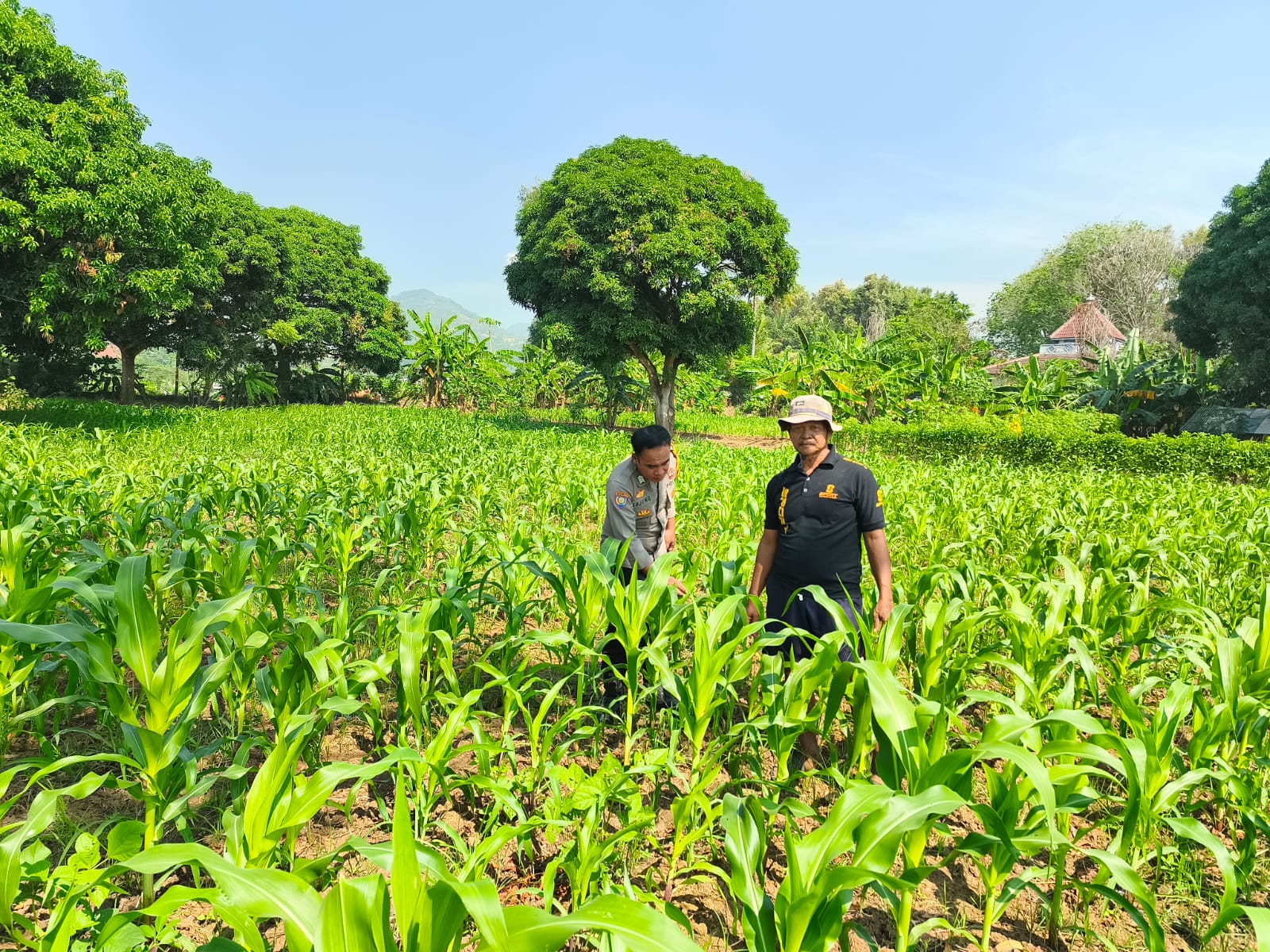 Pantau lahan jagung kelompok tani Sinarjaya Kec. Puloampel Merak Banten oleh Personil Bhabinkamtibmas Polsek Puloampel.
