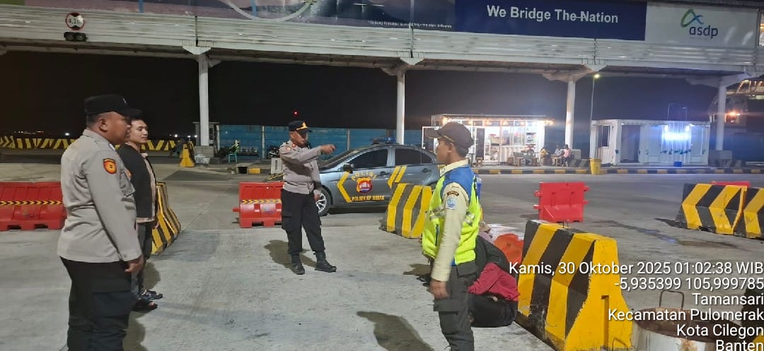 =Cilegon - Personil Polsek Kskp Merak Polres Cilegon melaksanakan patroli di kawasan pelabuhan merak memberikan rasa aman dan damai, Kamis (30/10/2025)