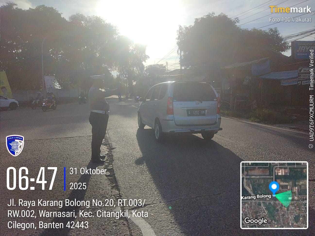 Cilegon – Berikan Pelayanan Pagi Kepada Masyarakat Personil Polsek Ciwandan Polres Cilegon Polda Banten melaksanakan pengaturan di titik kepadatan Arus Lalu-lintas Yang Ada Di daerah Hukum Polsek Ciwandan, Jum’at (31/10/2025).
