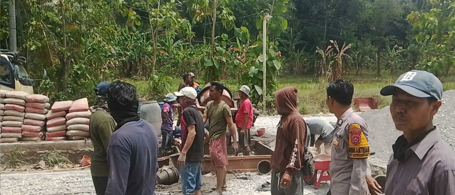 Hampiri Warga Sedang Gotong royong, Personal Bhabinkamtibmas Berikan Imbauan Cegah Aksi Curanmor siang Hari