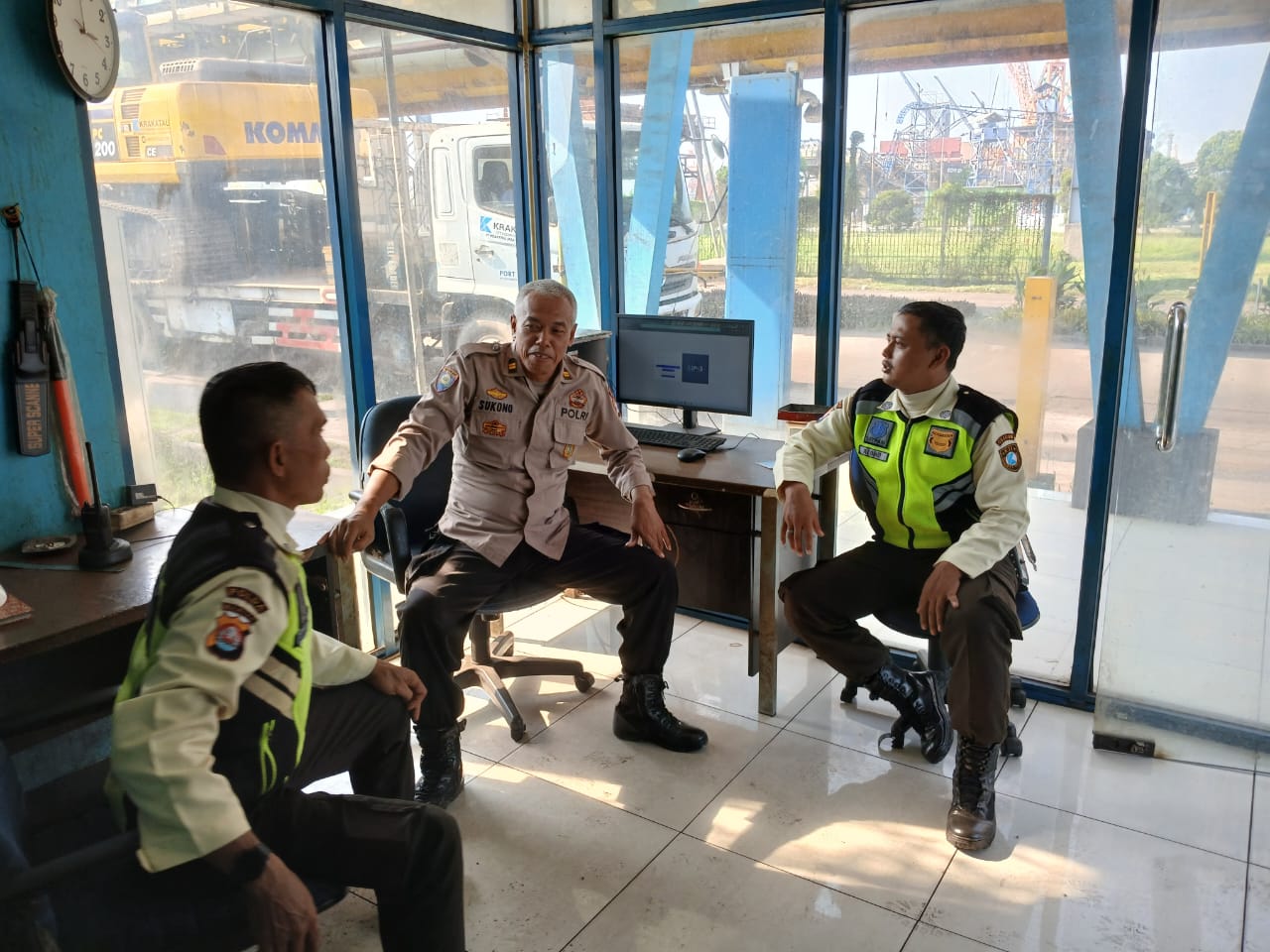 Kapolres Cilegon Polda Banten AKBP Martua Raja Taripar Laut Melalui Kapolsek Kskp Banten Polres Cilegon Polda Banten AKP Fredo Leonard Mengatakan Personil Polsek Kskp Banten Rutin menyambangi anggota Security dan memberikan himbauan agar para anggota Security bisa melaksanakan tugas menjaga keamanan di lingkungan Kawasan Pelabuhan.