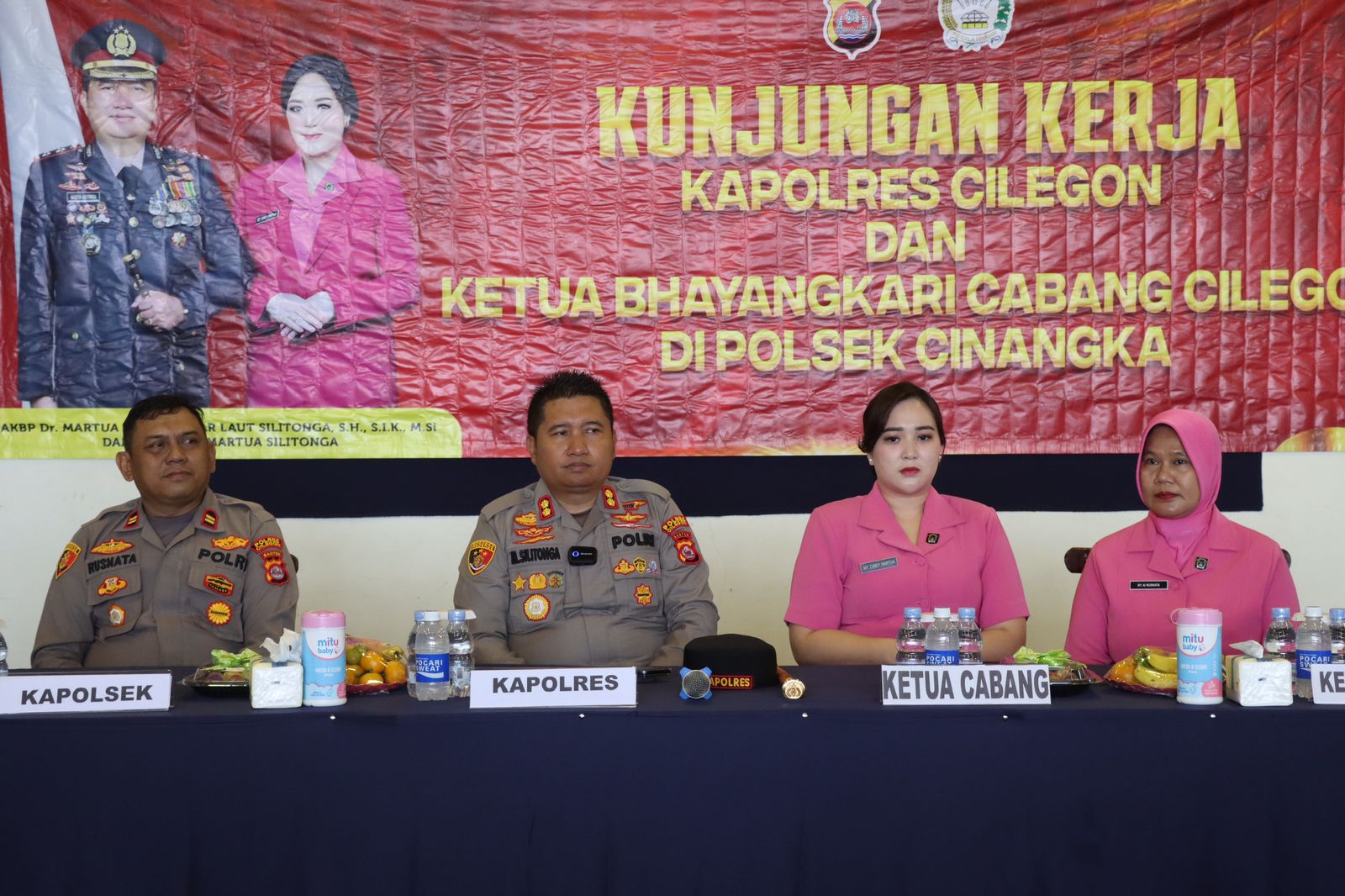 Kegiatan dimulai sekitar pukul 10.40 WIB dengan penyambutan rombongan, dilanjutkan pembukaan, menyanyikan lagu Indonesia Raya, dan pembacaan doa. Dalam kesempatan tersebut, Kapolsek Cinangka IPTU Rusnata menyampaikan ucapan selamat datang kepada Kapolres dan Ketua Bhayangkari Cabang Cilegon beserta jajaran, serta menyampaikan rasa hormat dan terima kasih atas perhatian pimpinan terhadap personel di tingkat Polsek.