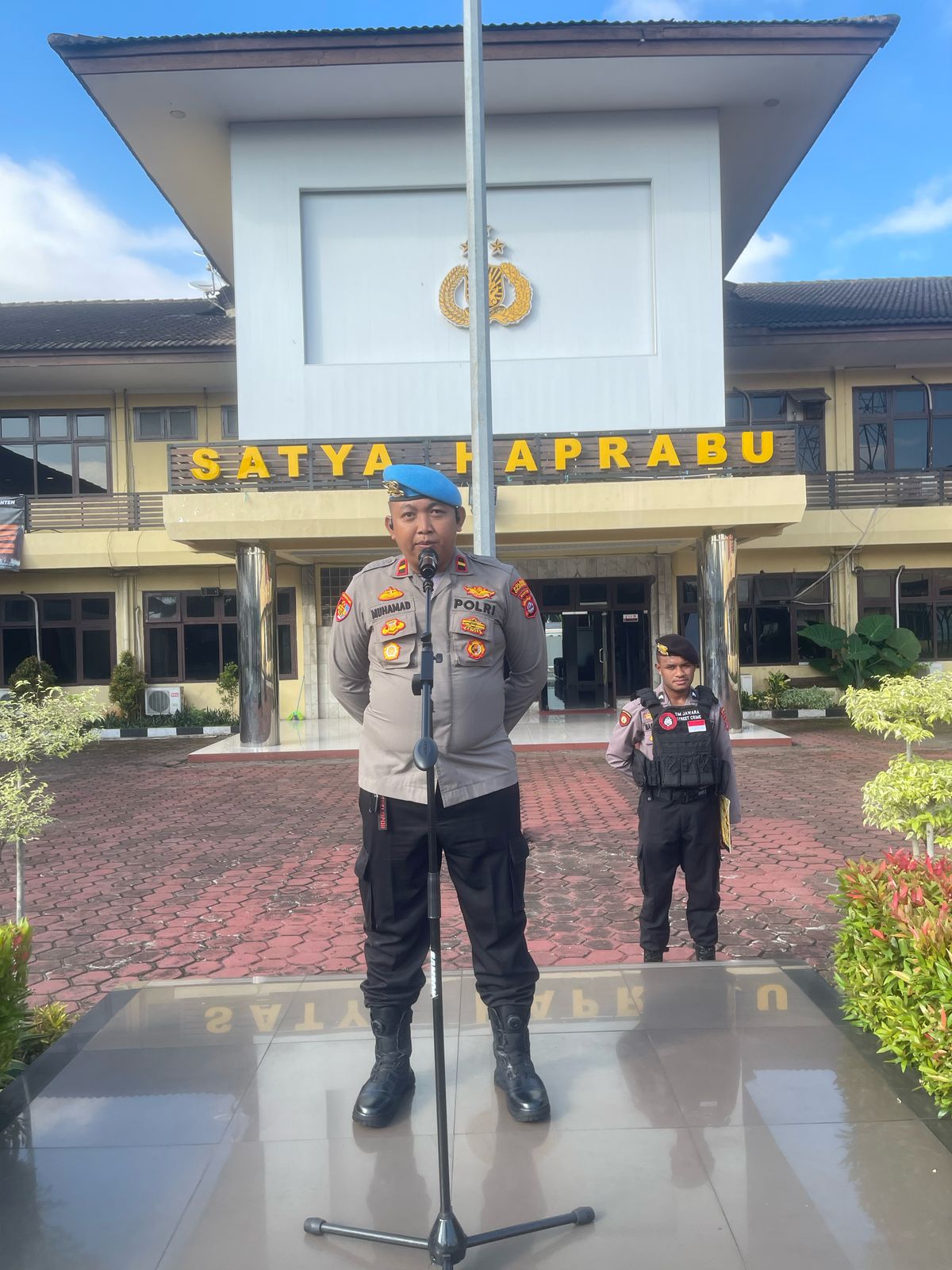 Kasi Propam Polres Cilegon Memimpin kegiatan apel pagi di lapangan Satya Haprabu Polres Cilegon