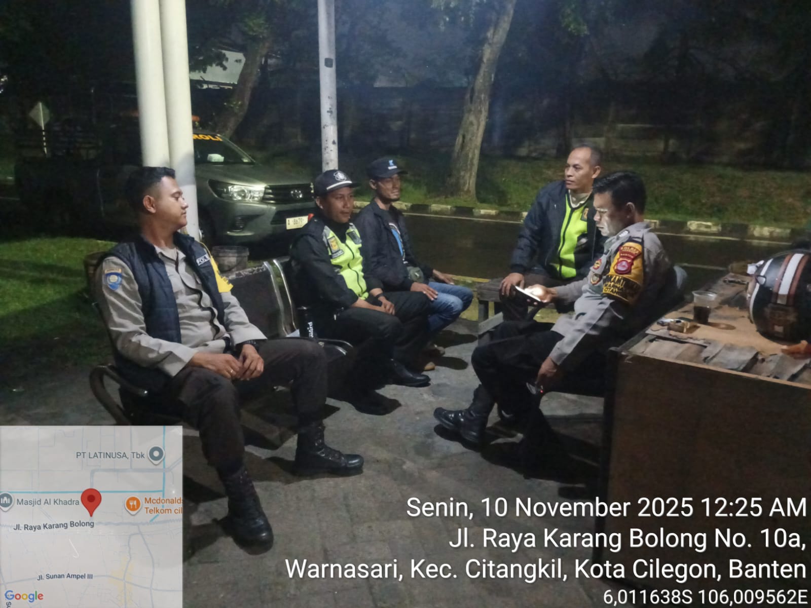 Cilegon –  Bhabinkamtibmas Polsek Ciwandan Polres Cilegon Polda Banten Laksanakan Silaturahmi Polri serta Patroli Dialogis Pembinaan Satpam/Security dan Guna Memelihara Harkamtibmas, Sebagai Petugas satuan pengamanan atau security merupakan bagian dari mitra dan kepanjang tanganan tugas Polri yang membantu melaksanakan pengamanan, Rabu (12/11/2025).