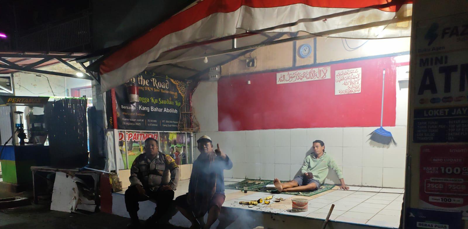 Cilegon ~ Dalam upaya menjaga situasi kamtibmas tetap kondusif,Bhabinkamtibmas Polsek Bojonegara Polres Cilegon Polda Banten, Bripka Bambang Bhabinkamtibmas Desa Mangkunegara melaksanakan kegiatan kontrol dan pemantauan ronda malam,di sejumlah pos ronda warga yang berada di wilayah binaannya, Jumat (14/11/2025).