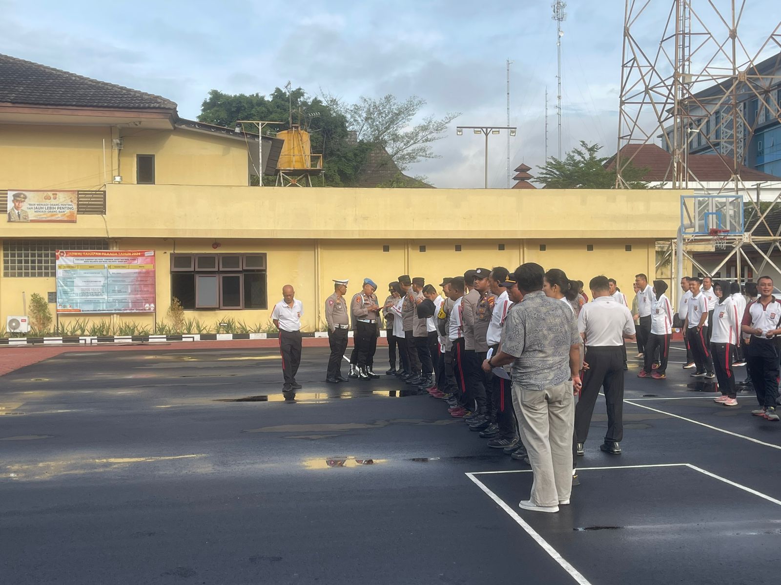 dalam pelaksanaan tugas di lapangan di Lapangan mako polres Cilegon, Jumat(04/04/2024)