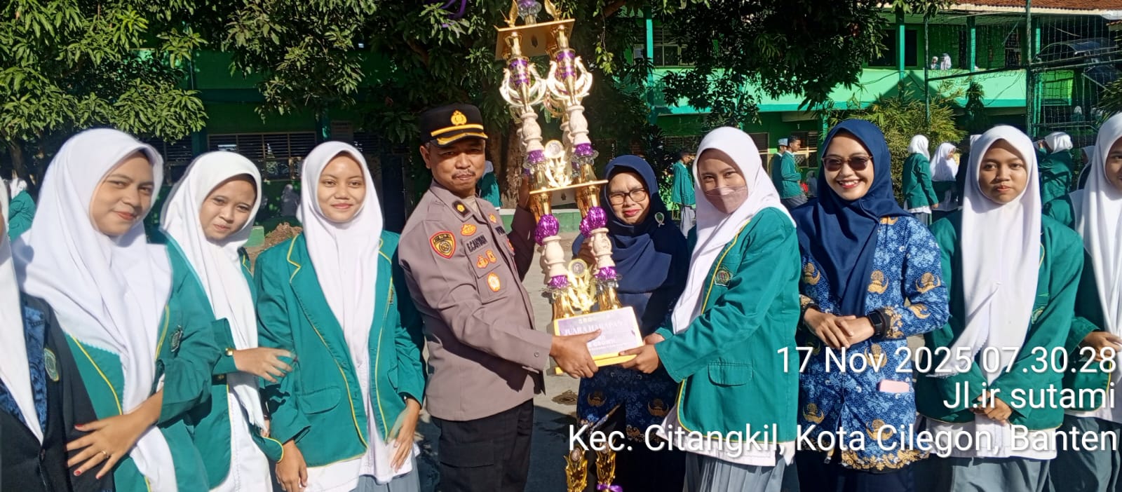 Cilegon – Bhabinkamtibmas Polsek Ciwandan Dampingi Kabag SDM Polres Cilegon Polda Banten KOMPOL Entang Cahyadi Pimpin Upacara Dan Menyambangi MAN 1 Kota Cilegon Dikelurahan Lebak Denok Kecamatan Citangkil, Menyampaikan Pesan-pesan Kamtibmas Dan Memberikan Imbauan, Selasa (18/11/2025).