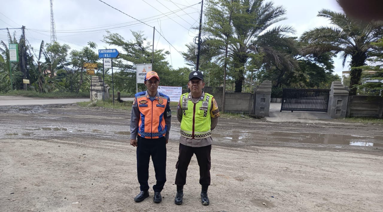 Strong Poin Sore, Bhabinkamtibmas dan Dishub Laksanakan Gatur lalu lintas Di Jalan Raya PT MSJ Bojonegara