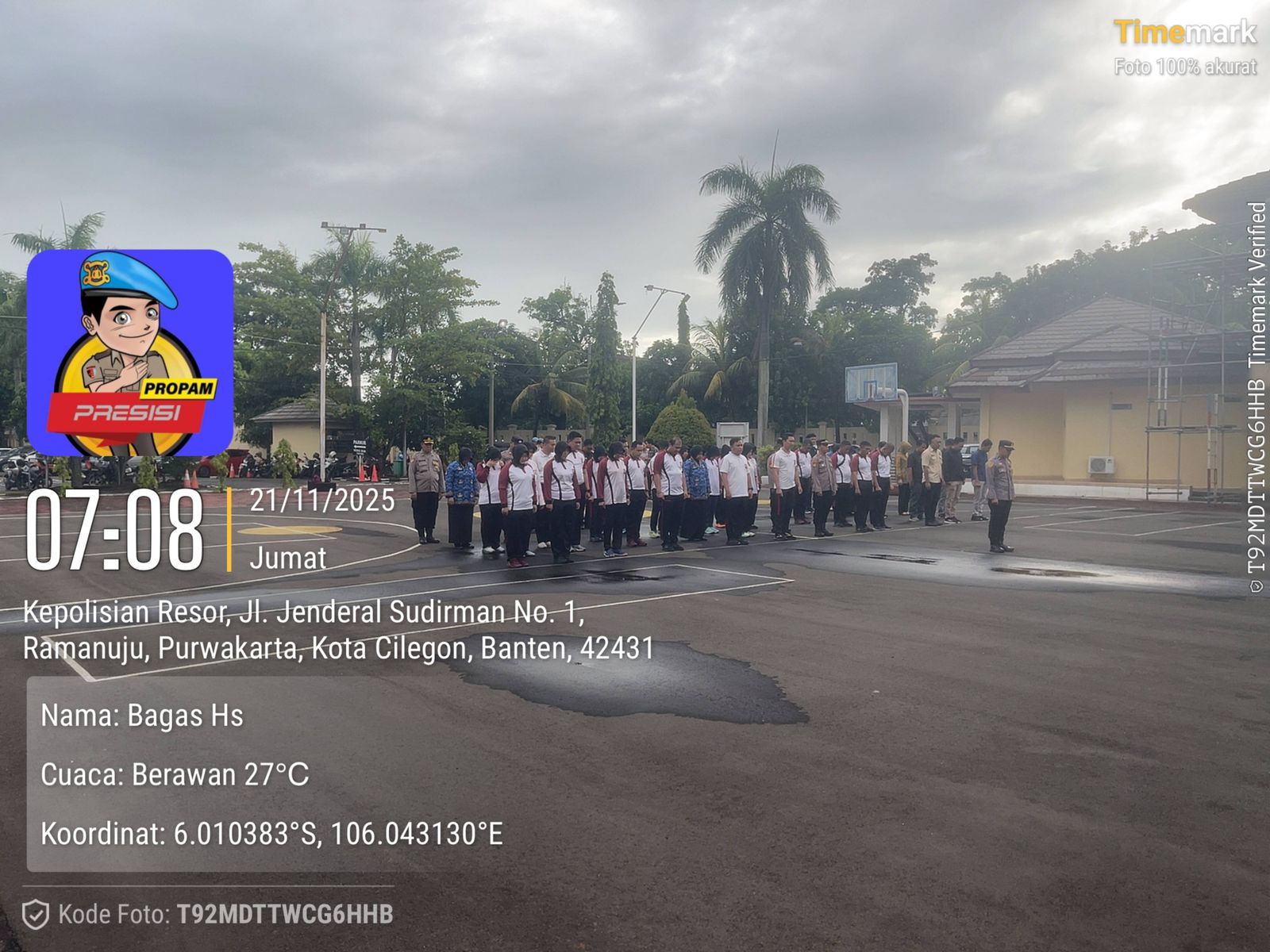 Polres Cilegon melaksanakan kegiatan olahraga rutin setelah apel pagi sebagai bagian dari upaya menjaga kesehatan dan kebugaran fisik seluruh personel. Kegiatan diawali dengan apel pagi yang dipimpin oleh pejabat utama Polres, dilanjutkan dengan peregangan dan senam bersama di halaman Mapolres.