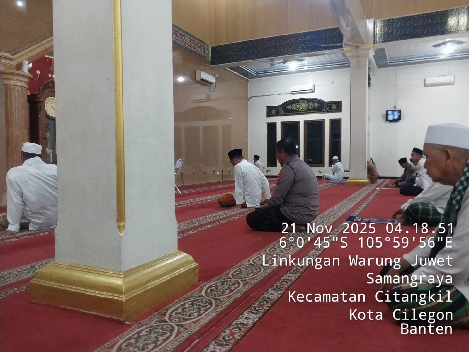 Cilegon - Dalam Rangka Implementasi Program Subuh Keliling Kapolda Banten Dan Kapolres Cilegon Polda Banten Bhabinkamtibmas Polsek Ciwandan Polres Cilegon Polda Banten melakukan Sholat Subuh Berjama’ah bersama warga masyarakat, Jum'at (21/11/2025).