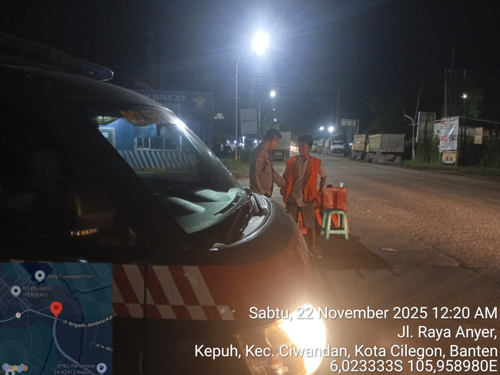 Cilegon - Personil Polsek Ciwandan Polres Cilegon Polda Banten Selalu Melaksanaan Kegiatan KRYD (Kegiatan Rutin Yang Ditingkatkan) Patroli Rutin malam hari di daerah hukum Polsek Ciwandan Guna Persempit Ruang Pelaku Tindak Kejahatan, Sabtu (22/11/2025).