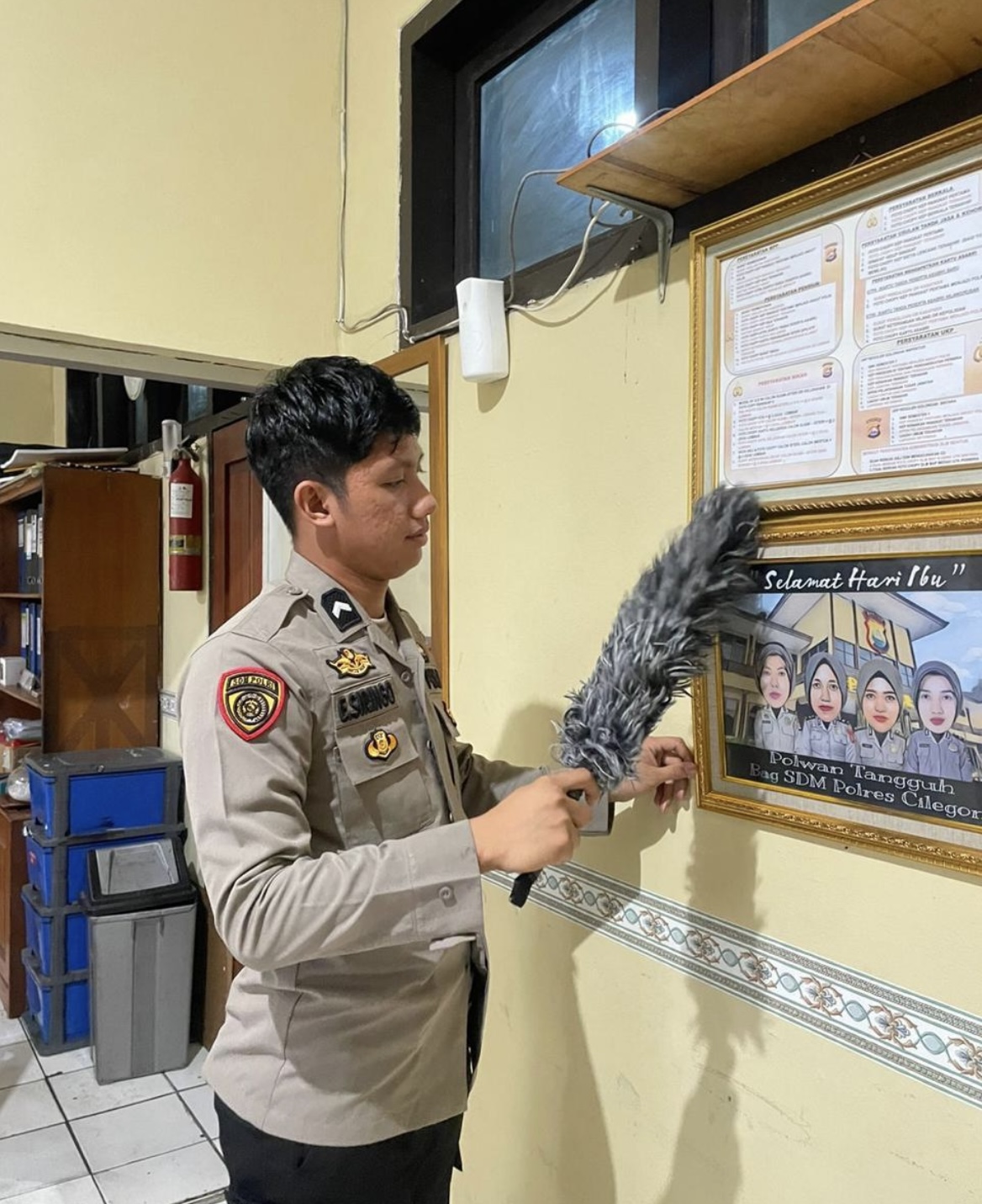 Anggota Bag SDM Polres Cilegon, Aktif dalam rutinitas membersiihkan ruangan kerja setiap hari