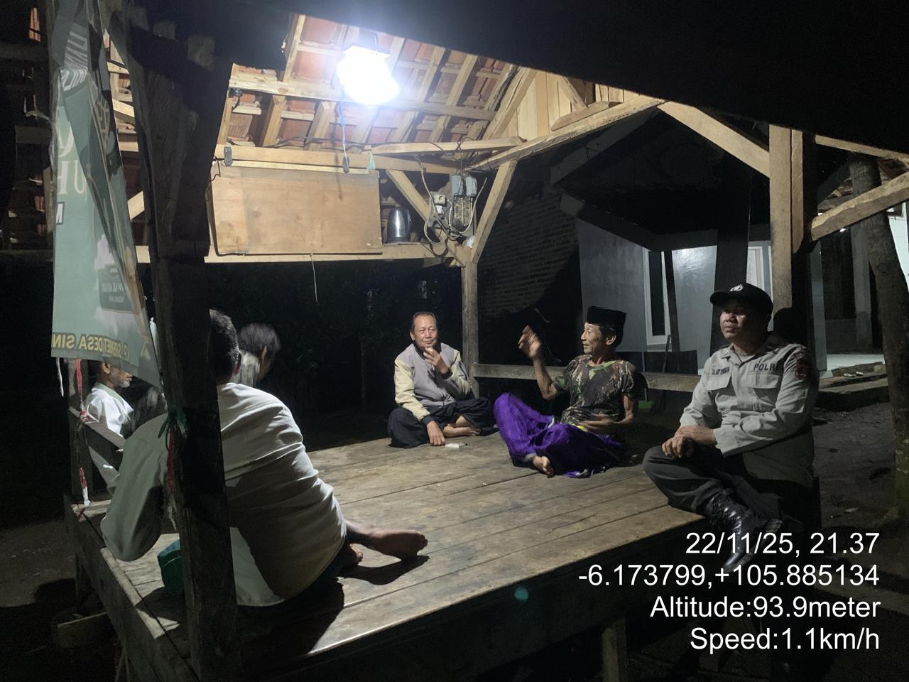*Polres Cilegon* || Personil Bhabinkamtibmas Polsek Cinangka melaksanakan Program Komandan Wish Kapolda Banten RONDA SATKAMLING menyampaikan komunikasi dengan Petugas Siskamling agar berperan aktif dalam menciptakan Harkamtibmas yang aman dan Kondusif, Minggu (23/11/2025).