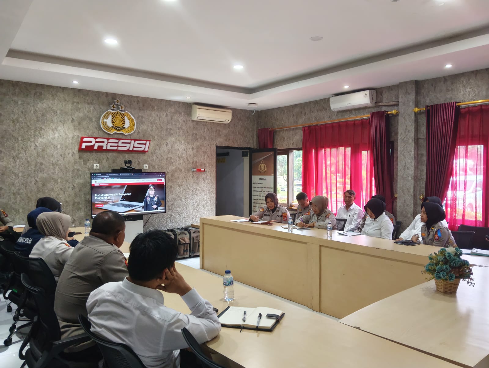 Polres Cilegon melaksanakan rapat persiapan pembuatan website Polres Cilegon yang dipimpin oleh Kapolres Cilegon, AKBP Dr. Martua Raja Taripar Laut Silitonga, S.H., S.I.K., M.Si. Rapat ini dihadiri oleh pejabat utama dan staf Polres Cilegon yang terkait dengan pembuatan website.