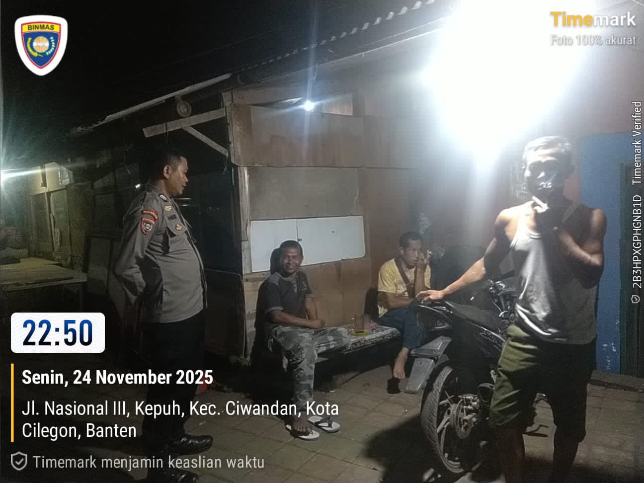 Cilegon - Polsek Ciwandan Polres Cilegon Polda Banten kembali menunjukkan komitmennya dalam menciptakan keamanan dan ketertiban masyarakat (kamtibmas) yang kondusif melalui Kegiatan Patroli Malam, Kegiatan ini dilakukan secara rutin dengan berkeliling di daerah hukum Polsek Ciwandan,Selasa (25/11/2025).