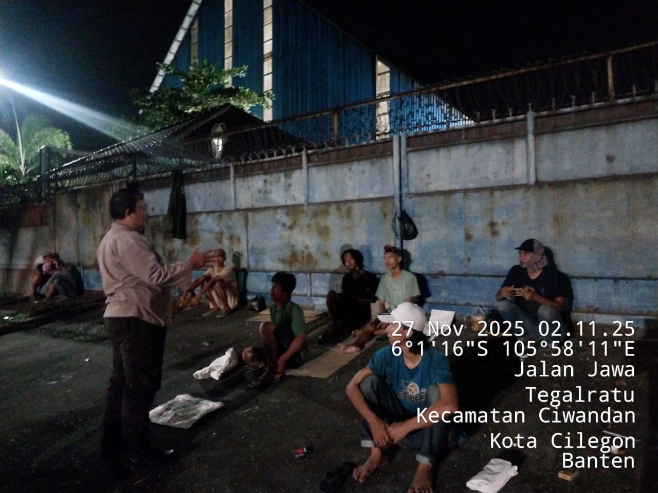 Cilegon - Personil Polsek Ciwandan Polres Cilegon Polda Banten Dalam Pelaksanaan Kegiatan Patroli dengan menyalakan lampu rotator berwarna biru di Daerah Hukum Polsek Ciwandan Polres Cilegon Polda Banten dari malam hingga dini hari, dalam rangka menciptakan situasi aman dan kondusif, Kamis (27/11/2025).