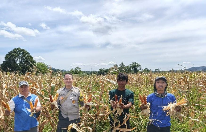 Polsek Anyar Bersama Poktan Melaksanakan Panen Jagung