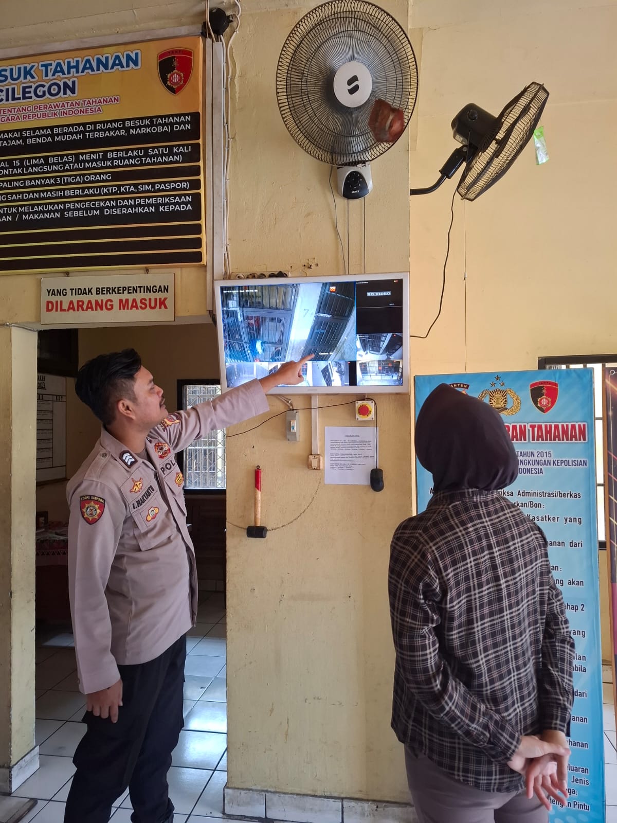 Personil Sat Tahti Cek Tahanan melalui CCTV yang ada di Rutan Polres Cilegon.