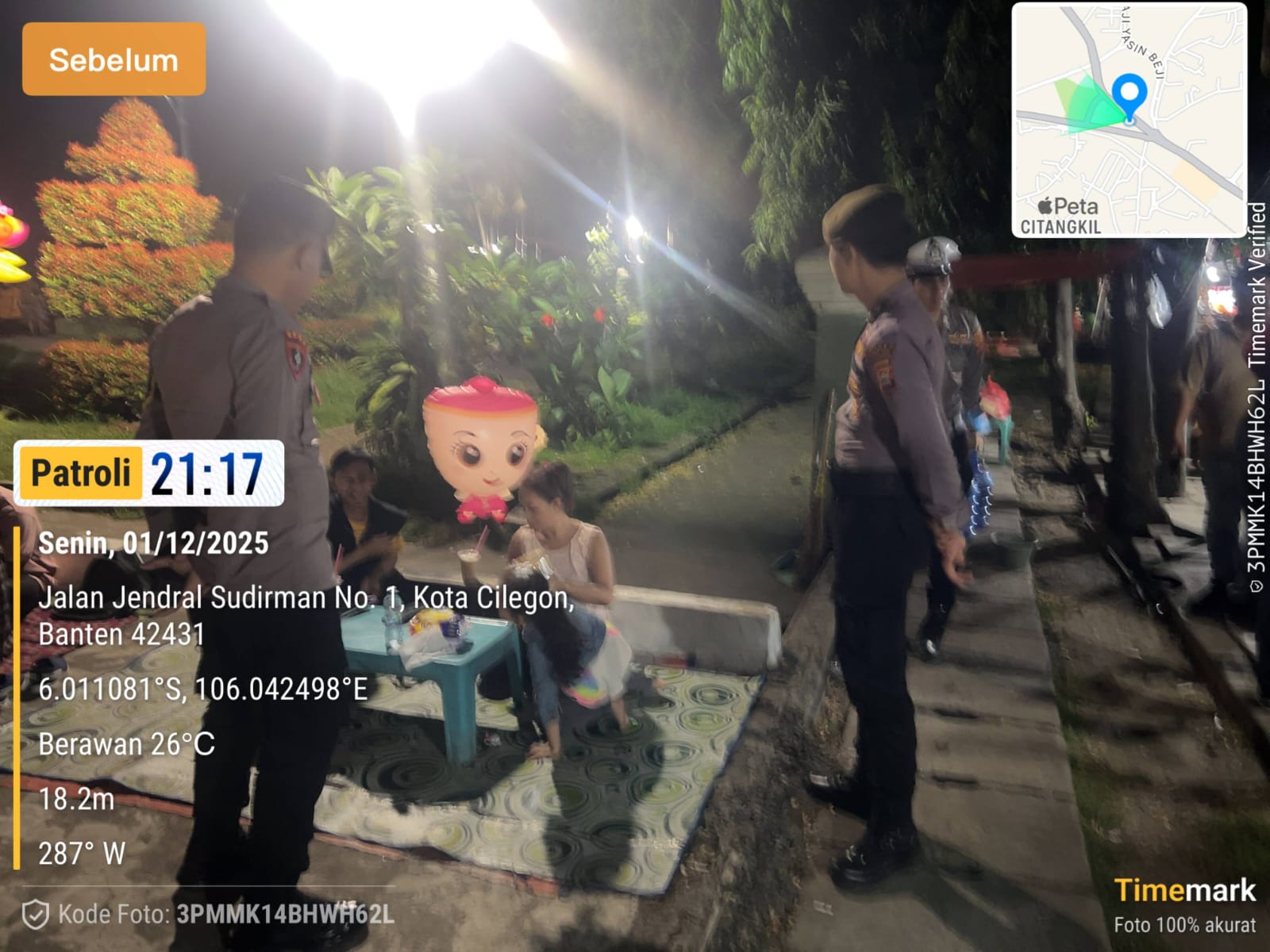 Anggota Polres Cilegon melaksanakan kegiatan patroli malam sebagai upaya menjaga keamanan dan ketertiban di wilayah hukumnya. Patroli dilakukan dengan menyisir sejumlah lokasi yang dianggap rawan terjadinya gangguan kamtibmas, termasuk area pemukiman, pusat keramaian, dan jalur utama.