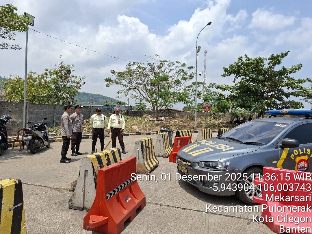 Cilegon - Personel Polsek Kskp Merak Polres Cilegon Polda Banten melaksanakan sambang dan patroli kawasan pelabuhan merak dalam rangka menjaga Harkamtibmas di Kawasan Pelabuhan Merak, Selasa (02/12/2025).